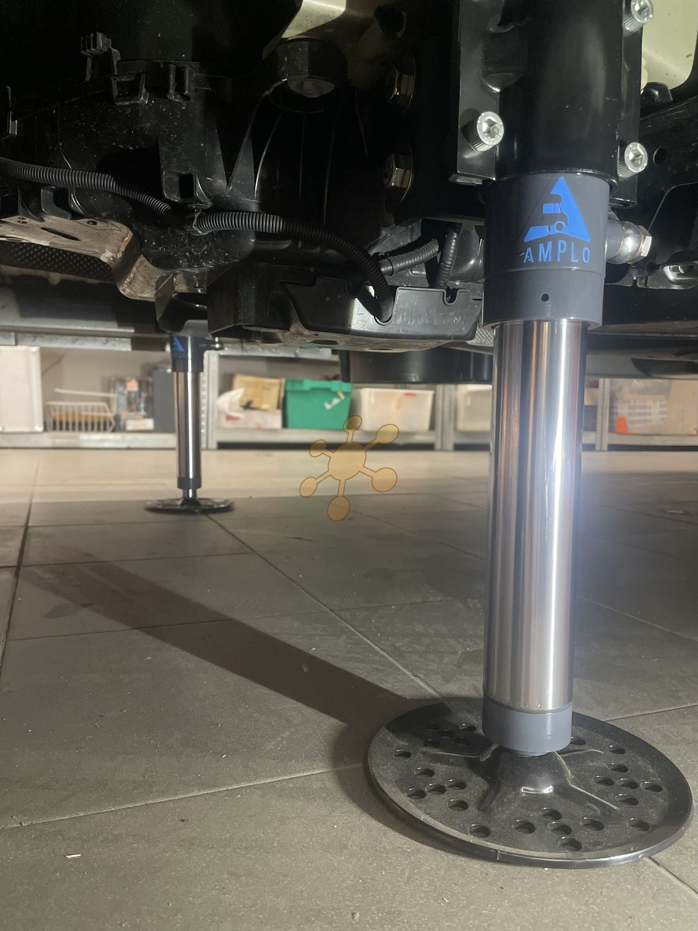 Hydraulické nohy Amplo zajistí dokonalé automatické vyrovnání obytného vozu jedním stisknutím tlačítka. Robustní Italská technologie, maximální stabilita a komfort při parkování i dlouhodobém stáníbez potřeby klínů. V ceně sady hydraulických nohou jsou přední i zadní kotvící adaptéry.